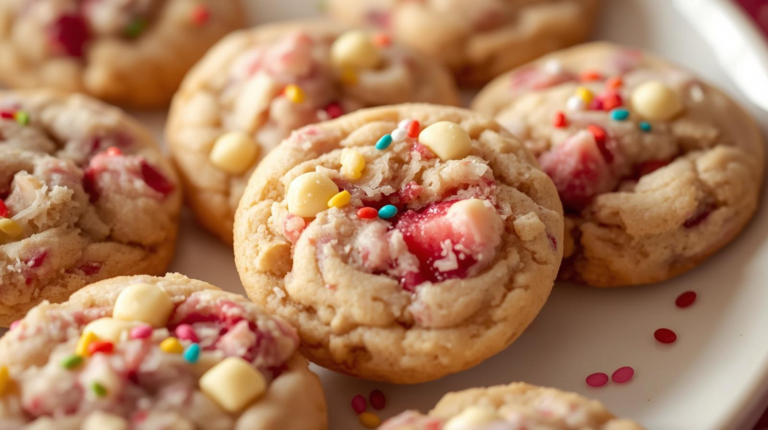 These Strawberry White Chocolate Chip Cookies are a delightful treat perfect for Valentine’s Day. With their soft texture and sweet strawberry flavor, they make an excellent choice for valentine desserts and cute baking projects. The addition of colorful sprinkles adds…