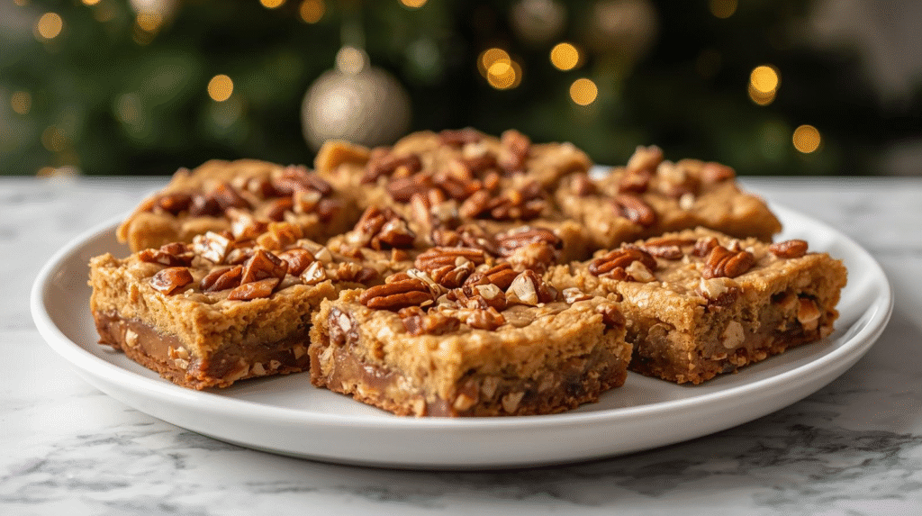 These cookie bars feature a buttery base infused with maple syrup, mixed with crunchy pecans and sweet toffee bits. The recipe yields about 12 bars and is perfect for gatherings or a cozy night in.