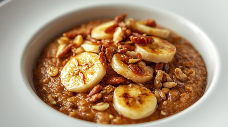 Baked Protein Pancake Oat Bowl with Caramelized Bananas