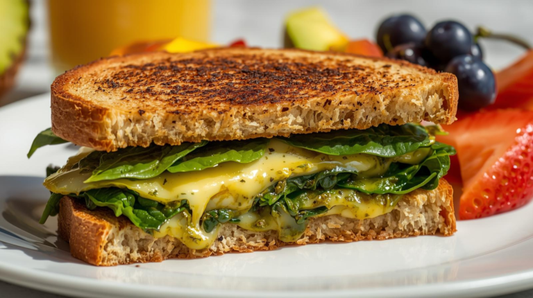 High-Protein Spinach Pesto Breakfast Sandwich Melt