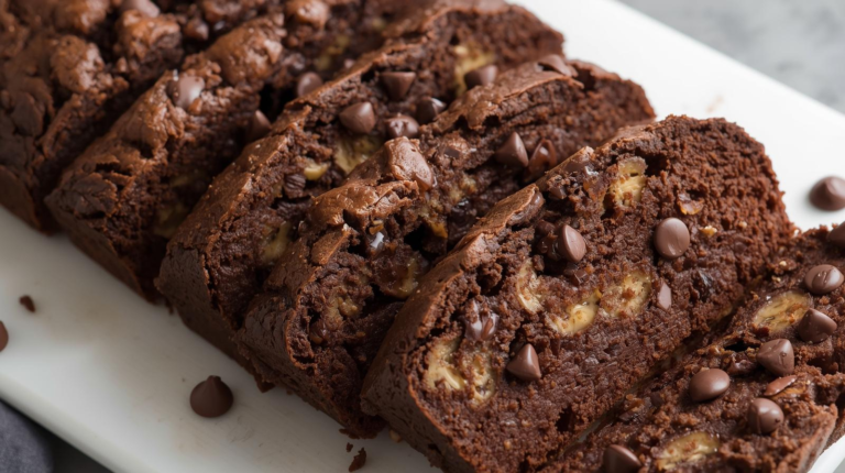 Double Chocolate Tahini Banana Bread Breakfast Loaf