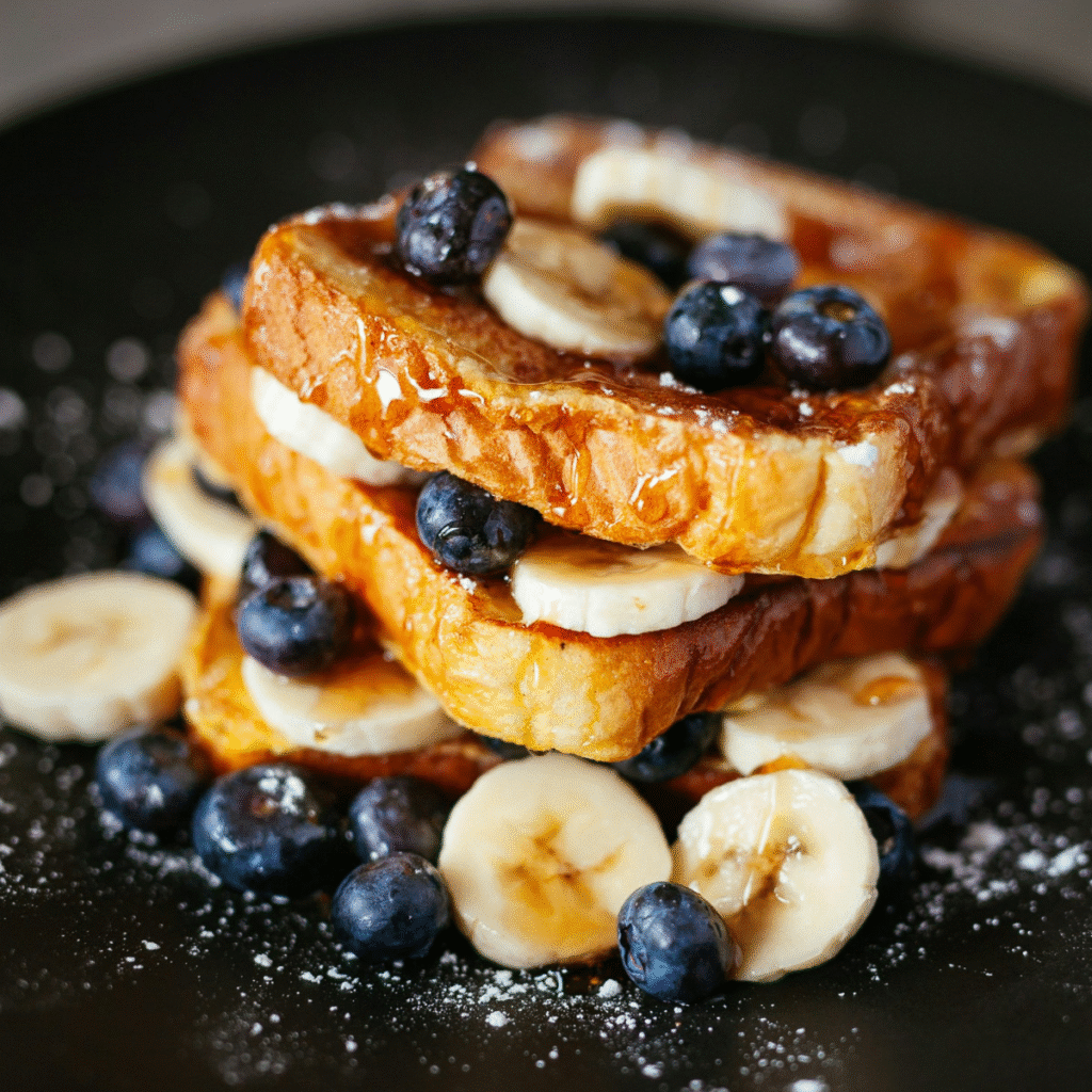 Elevate your weekend brunch with this incredible banana-stuffed French toast. Imagine thick slices of rich, custardy bread, griddled to golden-brown