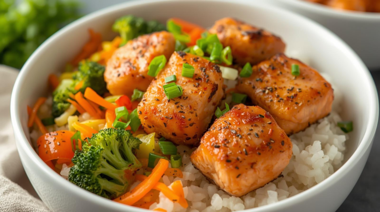 15-Minute Air Fryer Salmon Bites Rice Bowls