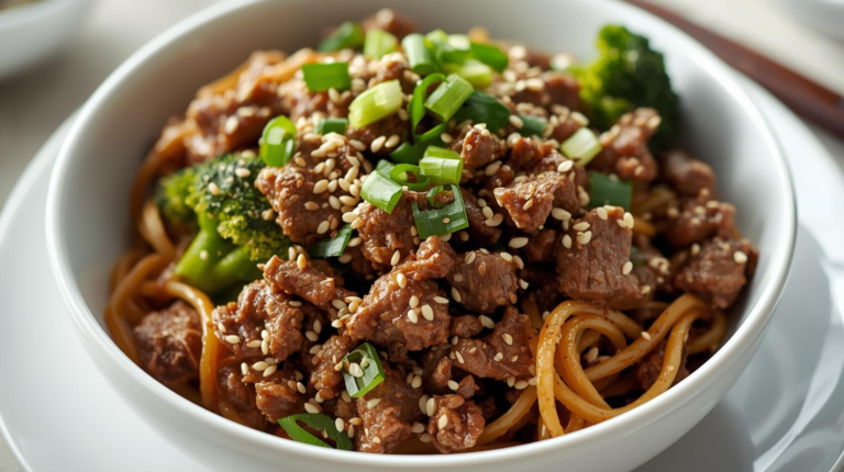 20-Minute Ground Beef Broccoli Sesame Noodle Bowls