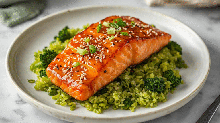 Honey Sesame Glazed Salmon with Broccoli Rice