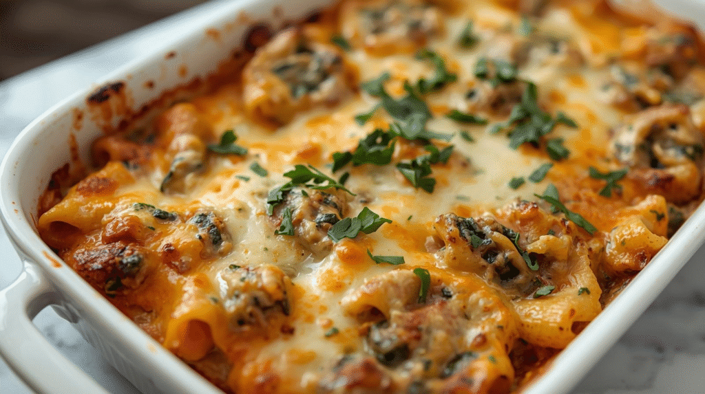 This Cheesy Spinach Artichoke Pasta Bake is a comforting casserole that combines the rich flavors of spinach, artichokes, and cheese. It’s a perfect dish for a cozy family dinner, providing a satisfying meal that everyone will love.