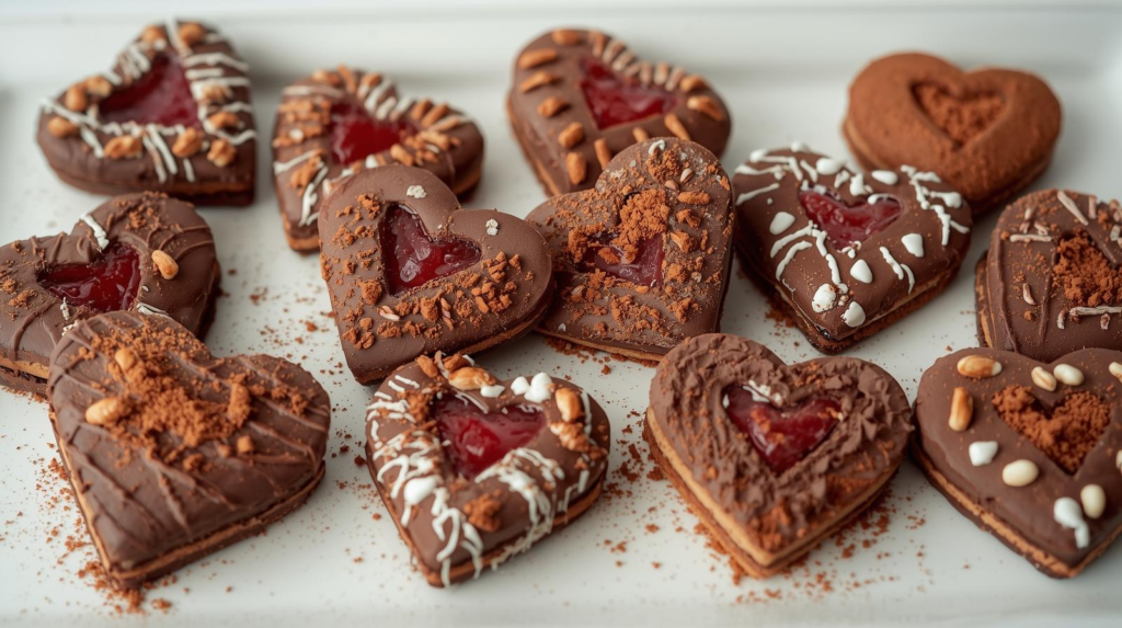 These heart-shaped cookies feature a chocolate hazelnut base, filled with jam, and dusted with cocoa for a beautiful finish. The recipe takes about 1 hour from start to finish and yields approximately 24 cookies, making them a delightful addition to your Valentine desserts.