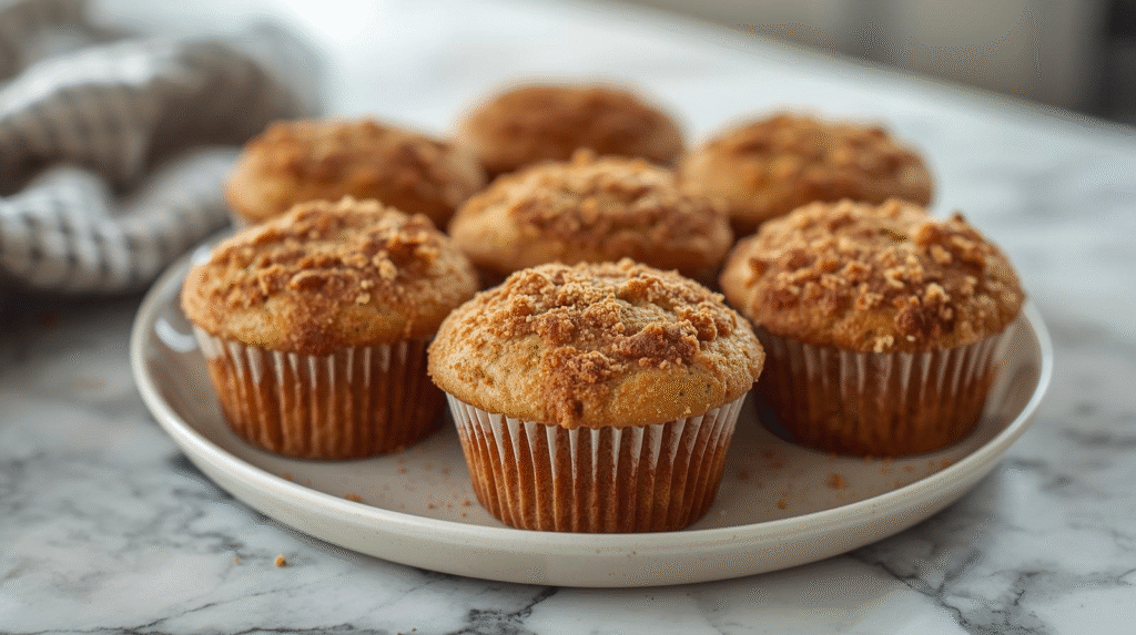 These muffins feature a moist and fluffy base infused with cinnamon, topped with a crunchy streusel that adds texture and sweetness. The recipe takes about 30 minutes from start to finish and yields 12 muffins, making it a great choice for sharing or enjoying throughout the week.