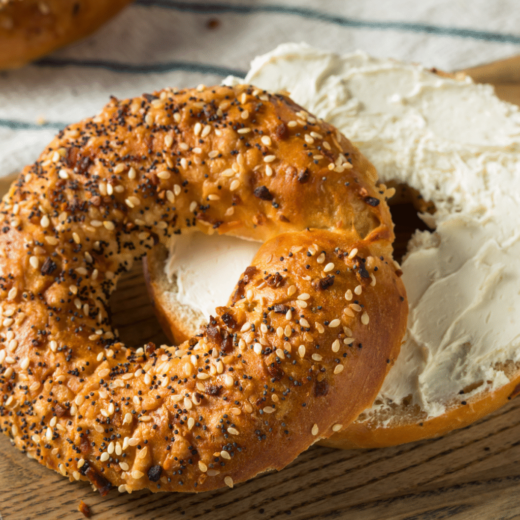 - Apply Topping: Brush the tops of the bagels with the egg wash. Generously sprinkle with Everything Bagel Seasoning.