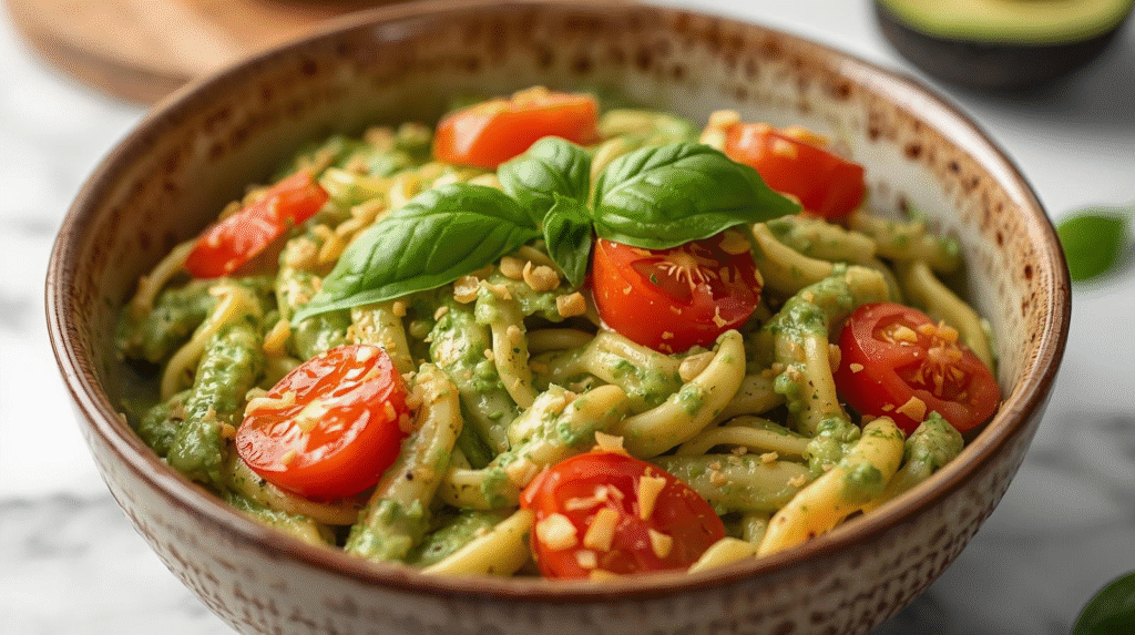Delicious Avocado Basil Pasta with Chickpea Noodles