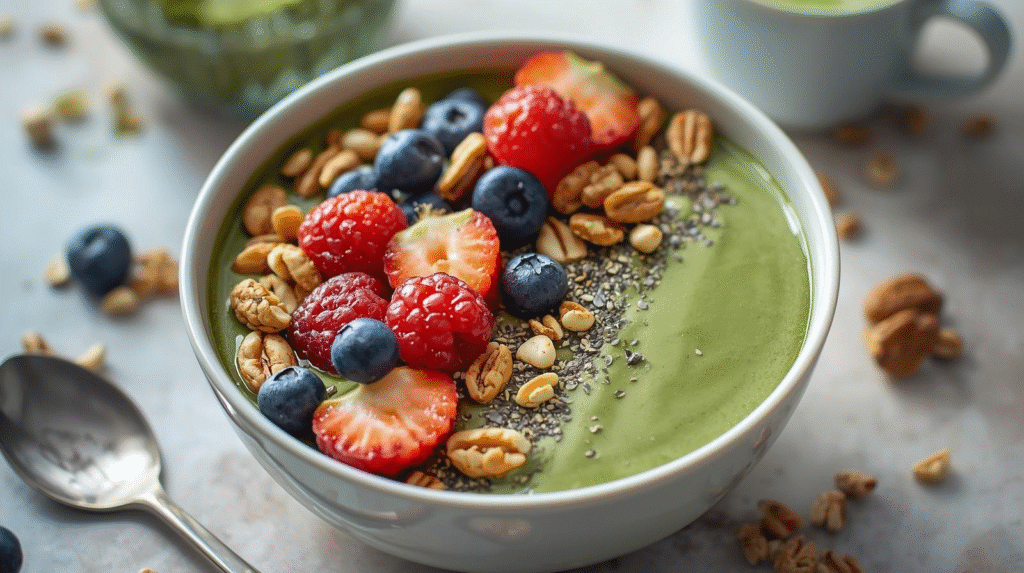 This matcha chia pudding features a blend of chia seeds soaked in almond milk and sweetened with honey or maple syrup, enhanced with matcha powder for a vibrant green color and rich flavor. The recipe takes about 10 minutes to prepare and requires chilling time, making it a convenient option for busy mornings.