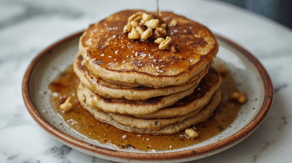 - Serve: Stack the pancakes on a plate, sprinkle with sea salt, and serve warm with syrup or toppings of your choice.