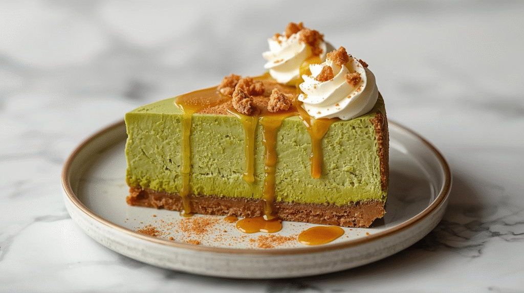 This gingerbread matcha cheesecake combines the warm spices of gingerbread with the earthy flavor of matcha, making it a perfect holiday dessert. The creamy texture and unique flavor profile will impress your guests and add a festive touch to your celebrations.