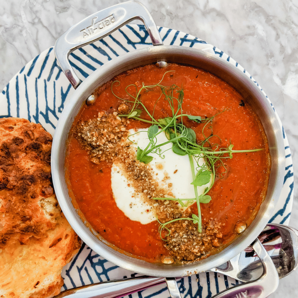 This is not just any tomato soup; it’s an experience. Imagine the deep, sweet flavor of oven-roasted red peppers and tomatoes, blended into a vibrant, silky soup that’s both comforting and sophisticated. This recipe elevates the classic with a swirl of creamy yogurt, a sprinkle of crunchy, spiced nut dukkah, and fresh microgreens. Perfect for a cozy lunch, an impressive starter, or a light dinner, you’ll be amazed at how these simple ingredients transform into a restaurant-quality dish right in your own kitchen.