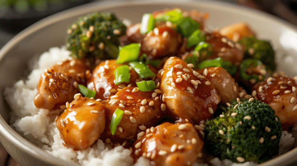 This 20-minute Chinese-inspired high-protein dinner features sticky honey-garlic sauce, tender chicken bites, and steamed broccoli over rice. It’s a quick and satisfying meal perfect for busy weeknights.