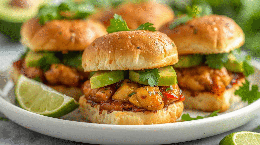 These Honey Lime Chicken Avocado Sliders feature juicy chicken tossed in a honey-lime glaze, topped with creamy mashed avocado, and served on mini buns. They are fresh, bright, and packed with high protein, making them a perfect choice for a light meal or appetizer.