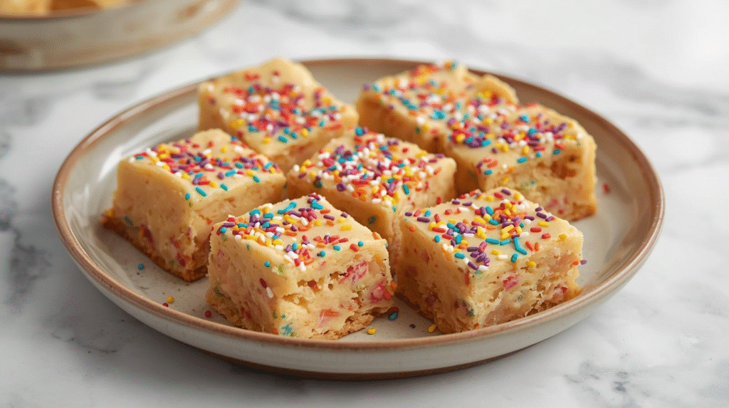 - Pour and Set: Pour the mixture into the prepared baking dish, spreading it evenly. Sprinkle additional sprinkles on top if desired. Refrigerate for at least 2 hours or until set.