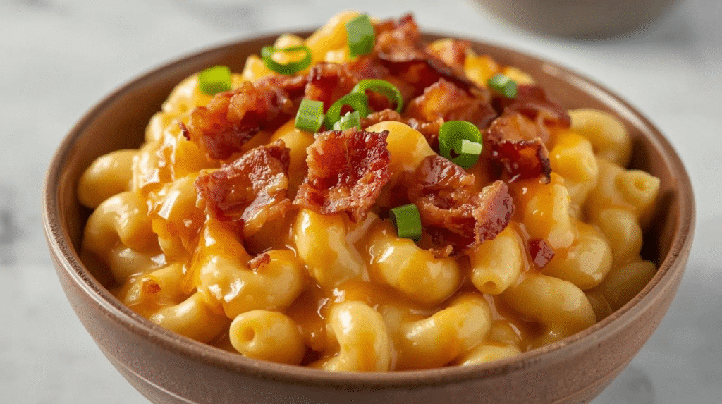 - Serve: Transfer to a serving dish, garnish with chopped green onions if desired, and enjoy your delicious Maple Bacon Mac and Cheese!