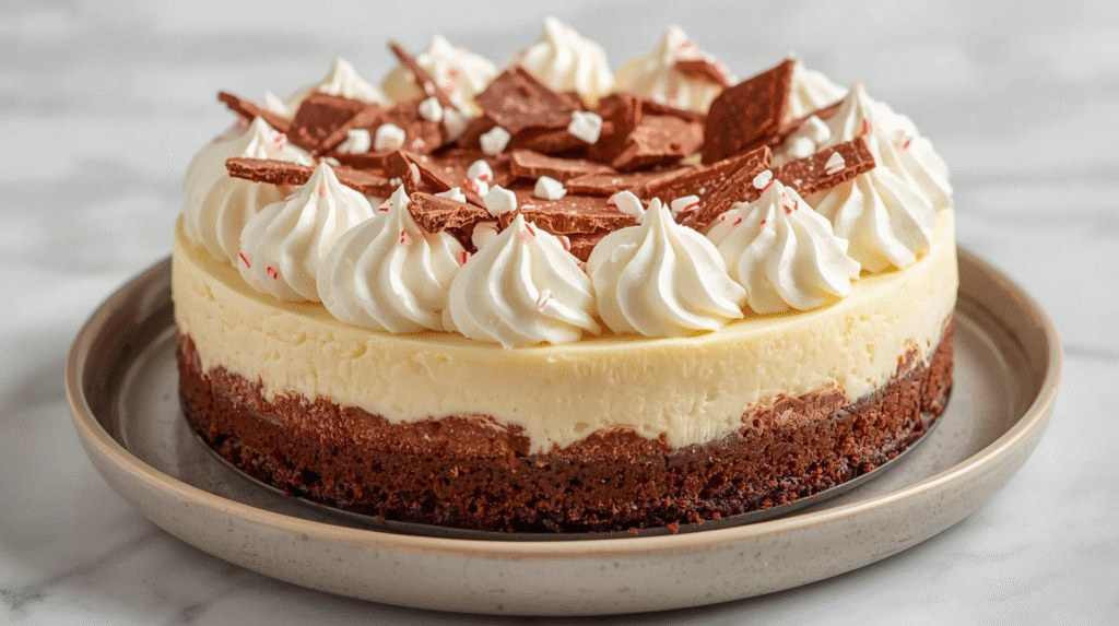 Decadent Peppermint Bark Cheesecake Layer Cake