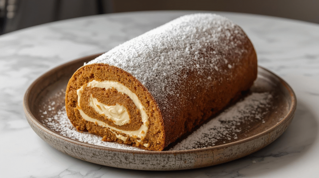 Delicious Pumpkin Roll Cake with Mascarpone Filling