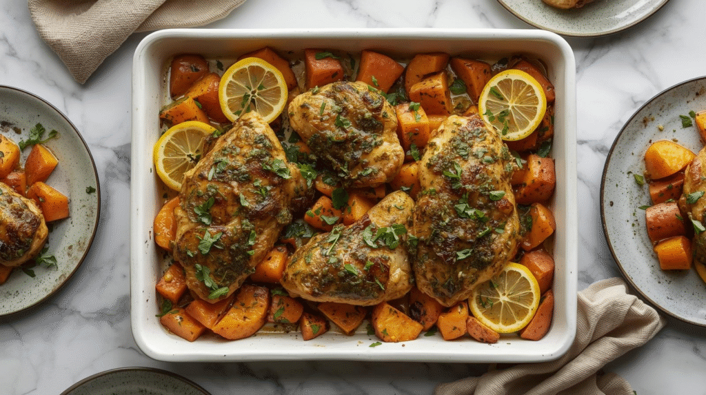 Easy Sheet-Pan Chimichurri Chicken & Sweet Potatoes