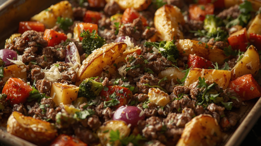 Easy Sheet Pan Ground Beef & Veggie Hash
