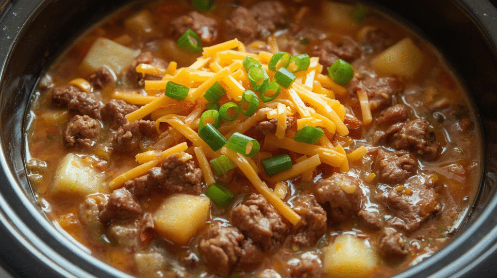 Easy Slow Cooker Cheeseburger Potato Soup