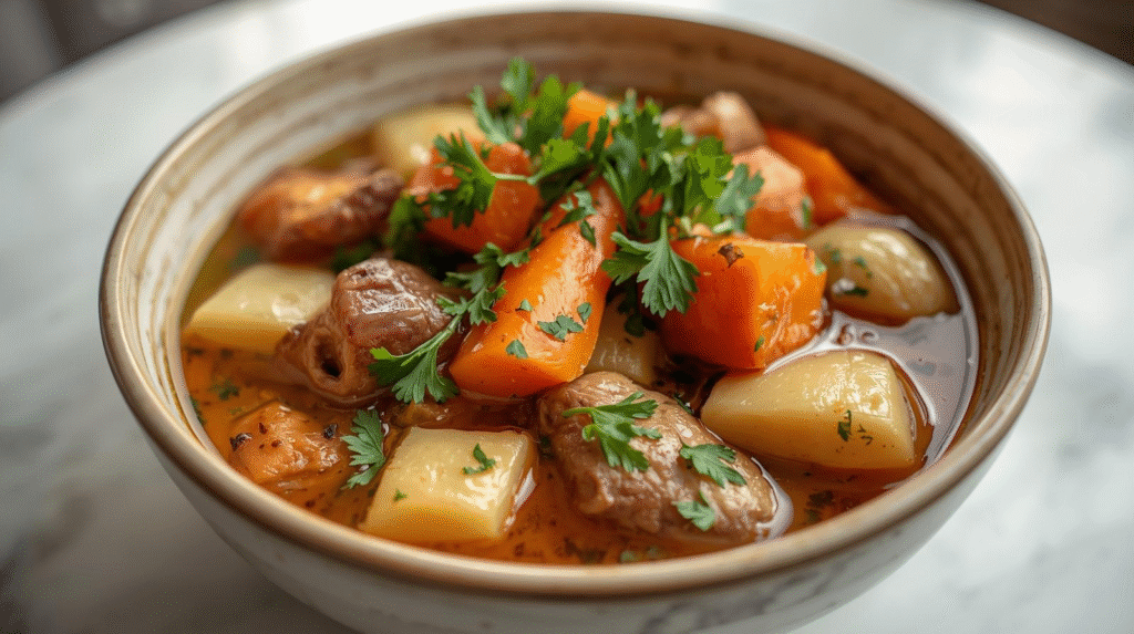 This Slow Cooker Maple Dijon Chicken & Root Vegetable Stew is a comforting and hearty dish, perfect for chilly days. The warm, sweet-savory maple Dijon broth combines beautifully with tender chicken and an assortment of root vegetables, including carrots, potatoes, and parsnips.