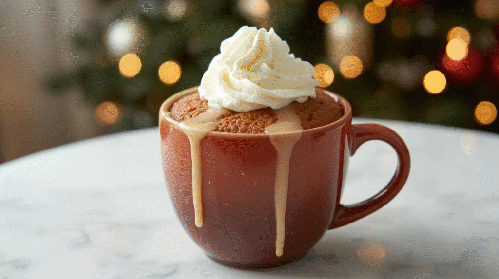 - Cool and Serve: Allow the mug cake to cool for a minute before topping with whipped cream or icing if desired. Enjoy your warm, fluffy gingerbread treat!