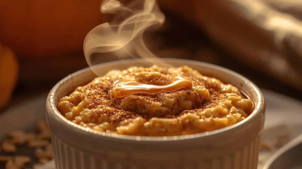This recipe for spiced pumpkin oats is a wholesome and comforting breakfast that takes about 30 minutes to prepare and bake. It serves 4 people and is perfect for cozy mornings.