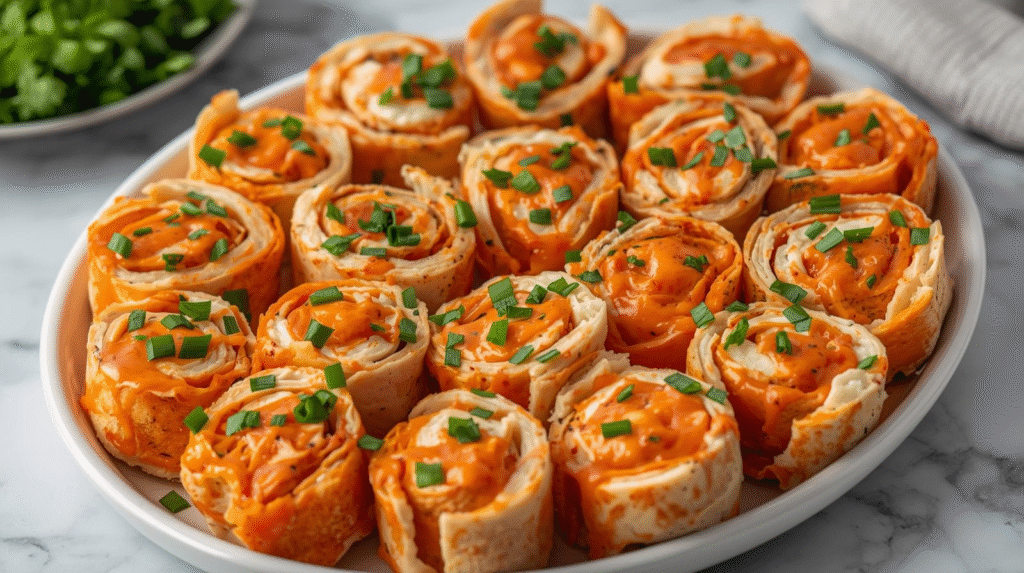 These Spicy Buffalo Chicken Pinwheels are a perfect appetizer for game day or any gathering. Shredded chicken blended with Greek yogurt, buffalo sauce, and green onions, rolled in a tortilla and sliced into bite-sized pinwheels, delivers a delightful kick of flavor.