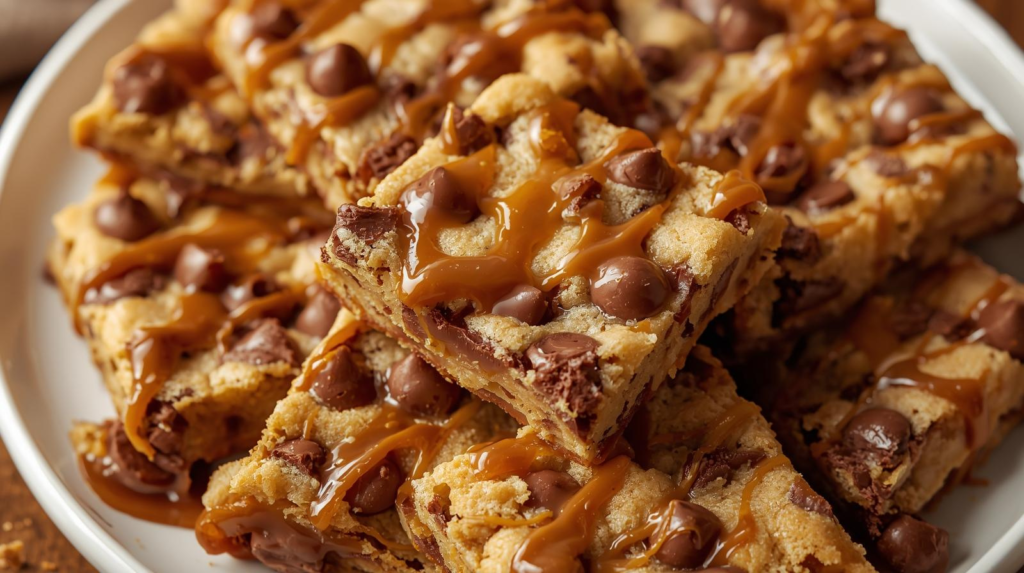 - Add Remaining Dough: Spoon the remaining cookie dough over the caramel layer, spreading it gently. Drizzle the rest of the caramel sauce on top.